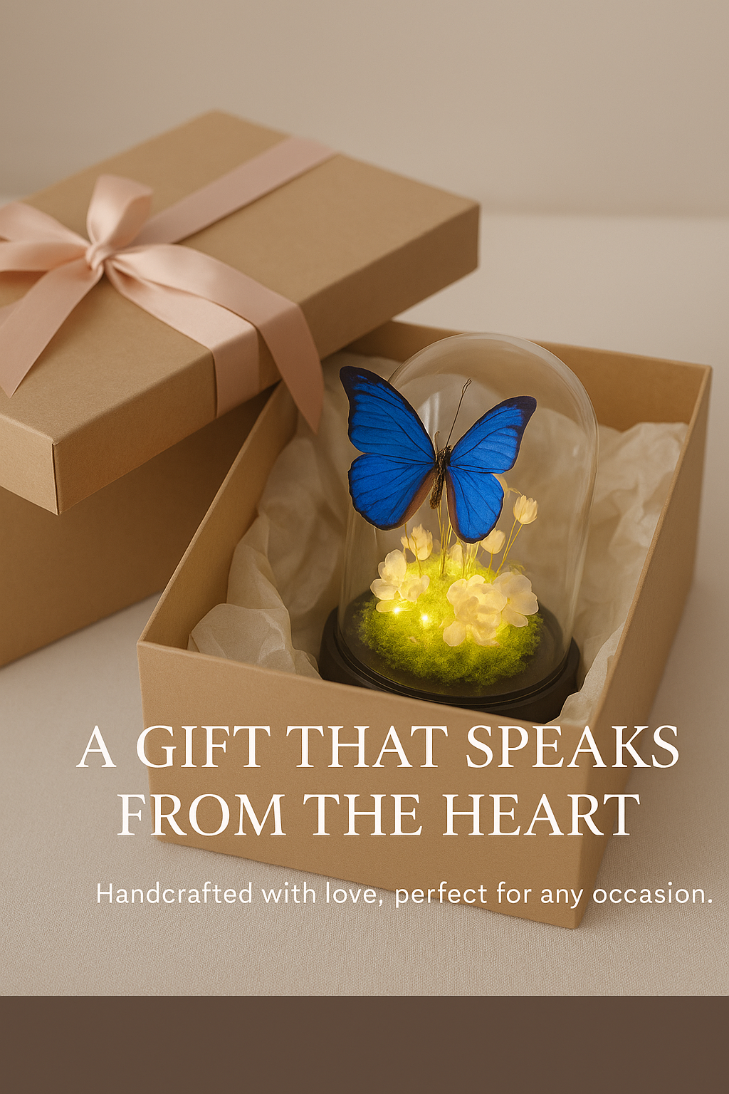 Watch your butterfly flap its wings, then turn on the warm LED lights to create a dreamy display with moss and仿真花. It's a kinetic sculpture by day and a cozy night light by evening.